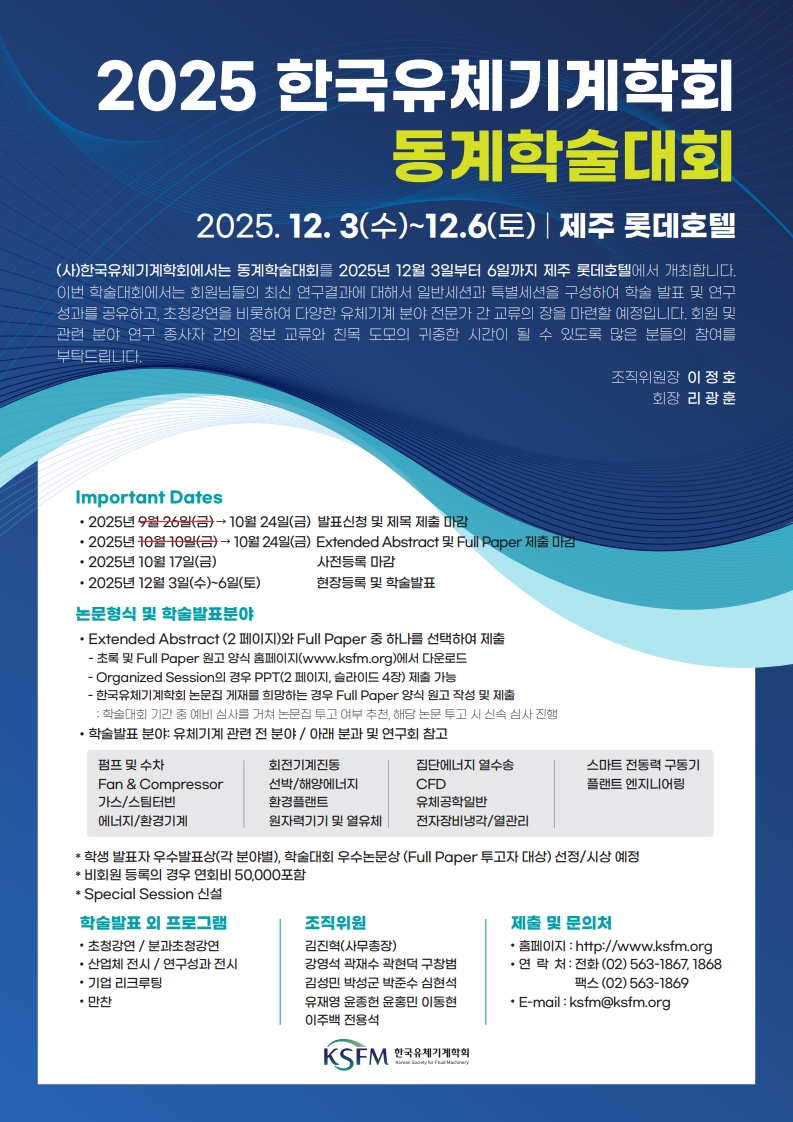 - 등록 및 기타 문의사항 : 한국유체기계학회 사무국 02-563-1867, 1868